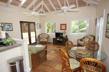 Upon entry to Perelandra, you're greeted by an interconnected kitchen, living, and dining space. This fluid layout fosters warmth and connection, making it an ideal backdrop for forging lasting memories. Encased in screens, expansive sliders seamlessly link the spacious room to an encompassing upper deck, framing sweeping sights of the ocean and St. Thomas in the background.